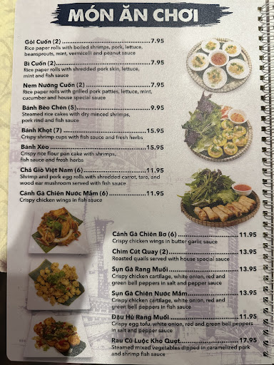 One standout is the Gỏi Bò Tái Chanh (Beef Salad), where tender slices of marinated beef are complemented by a zesty citrus dressing, creating a perfect balance of tanginess and savory notes. It's a great option for those who enjoy bold flavors with a refreshing twist.